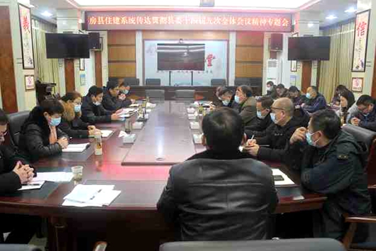 会议传达学习了《中共房县县委关于制定全县国民经济和社会发展第十四个五年规划和二〇三五年远景目标的建议》、《中共房县县委十四届九次全体会议决议》、市委五届十次全体会议精神、中央经济工作会议精神及全国住房和城乡建设工作会议精神,对住建系统贯彻落实全会精神和当前工作进行了安排部署。