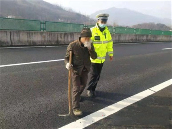 秦楚网讯 通讯员 胡光春 报道:六旬老人在高速路上穿行,高警巡逻发现后,及时将老大爷拉到应急车道边,避免了险情发生。
