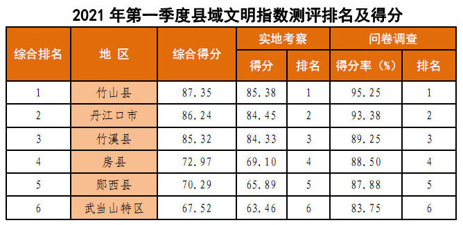 十堰发布一季度市域文明指数测评结果-今日房县网-- 房县门户