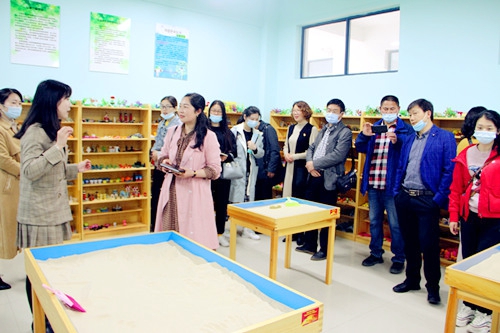 考察团一行参观了该校温馨舒适的心灵驿站;听取了该校校长严清华学校德育工作的汇报;询问了少队智慧争章活动的开展情况;查看了家庭教育、心理健康工作的档案资料;欣赏了底蕴浓厚的文化长廊,考察了德育实践基地-----植物园;观摩了该校充满活力的大课间活动;走进节水教育基地,观看了该校节水资源专题片,了解了节水资源、保护水环境的重要意义;来到沙盘团体辅导室、个体心理咨询室、心理疗愈室亲自体验抱一抱、大声呐喊宣泄、沙盘游戏等进行心理辅导的过程及疗效;走进家长学校课堂,听取了该校心理咨询师张梅艳老师对80名家长上的一节《如何提高孩子的注意力》的优秀家长提高课,大家被张老师幽默风趣的讲解深深吸引,不由自主的都做起了“家长”,同学员们一起互动起来。