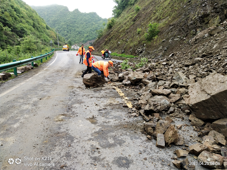 据了解,连日来受持续降雨影响,房县G209、G346、S318、S281等7条国省干线道路多处发生塌方,直接造成经济损失达200万元。险情发生后,房县交通公路部门闻令而动,立即启动公路抢险应急预案,组织人员、机械迅速抢通道路、排出险情。截止目前,共投入各类抢应急机械20台套,应急抢险人员230人次,抢通道路7条,清险塌方30余处3200立方米,确保了公路安全畅通。