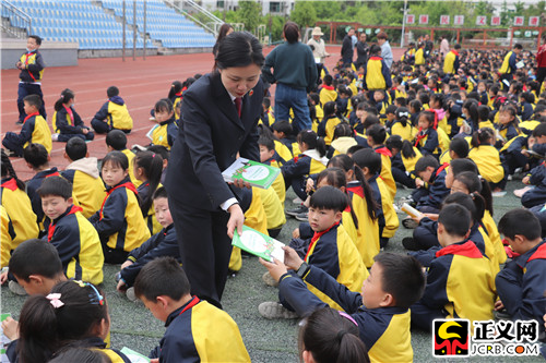 未检干警为学校师生发放未检宣传图书、手册