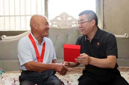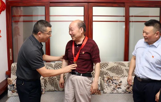 在老党员家中,李兴伟向他们颁发了“光荣在党50年”纪念章和慰问金,详细询问了他们生活近况。感谢他们在岗时兢兢业业、无私奉献,感谢他们为医院发展做出的贡献,用实际行动诠释了党的理念。同时希望老党员在保重身体的同时,发扬红色传统,不忘初心牢记使命,为医院发展贡献自己的力量,充分发挥党员余热。