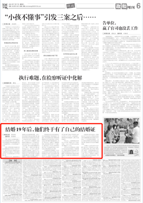 此前,该院检察长杨斌在房县龙堰镇某村村委会主持召开了一场公开听证会,通过听证会为胡某林夫妇解决了因结婚登记引发、足足困扰他们19年的烦心事。