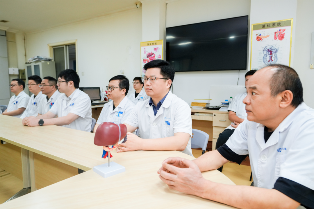 面对这例合并肝硬化失代偿期和胆管癌栓的复杂肝癌病例,涂华华主任迅速启动多学科诊疗(MDT)。肝胆胰腺外科、肿瘤科、介入科首先确定了以手术为主的治疗方案,而后放射科精准锁定肿瘤及癌栓位置、麻醉科评估心肺功能及麻醉风险、肝病科调控乙肝病毒活性改善术前肝功能分级、重症医学科预判术后风险及术后详细治疗方案……