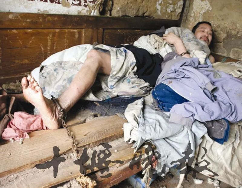 事后,王家人商量,为了不让他再伤人,便用铁链将他锁在一个用木梯做成的简易木板床上,吃喝拉撒都在床上。16年里,他曾挣断了十几根铁链,弄坏了十几块木板。