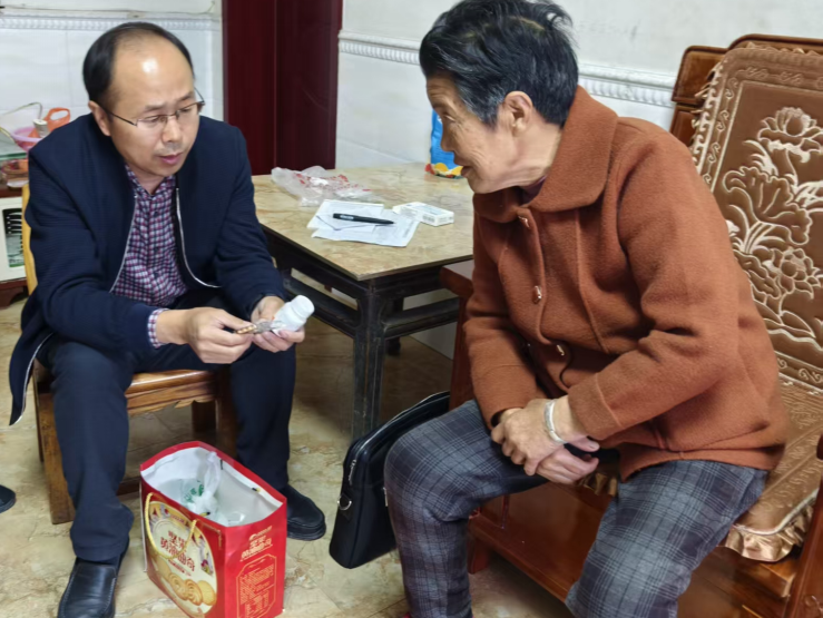 在村民杨开敏家中,县委办干部刚进门便关切询问其身体恢复情况。杨开敏今年78岁,身患直肠癌和冠心病,今年2次住院治疗,治疗费花费2万多元,在享受医保报销政策后只花费了2000多元,她笑着对入户干部说:“都是党的政策好啊,现在我看病报销这么多,大大减轻了家庭负担”。入户干部仔细询问了她的康复进度,耐心讲解医保报销后续流程,并叮嘱其安心养病,“有任何生活困难或政策疑问,随时联系我们”。一句句暖心话,让杨开敏连连道谢。