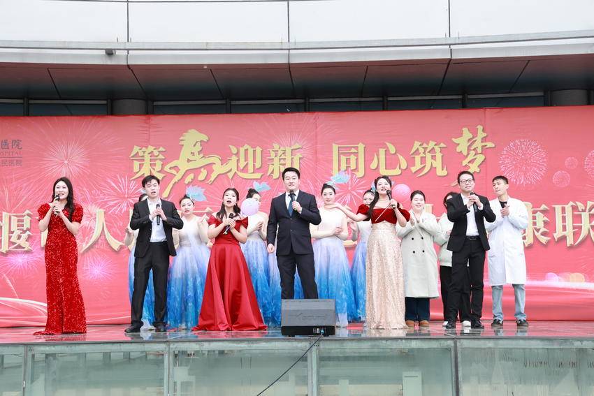 文艺节目精彩纷呈,均由医院职工、离退休人员及患者代表自编自演。离退休分会的戏曲《亲家母对唱》诙谐亲切;市群艺馆的《武当玄风》刚柔并济;医技科室分会的独唱《草原的月亮》给人一份宁静悠远的力量;生殖/泌尿分会的情景剧《向阳而生,如此肾好》取材真实诊疗故事,生动演绎医患并肩的信任与坚守;消化疾病中心的歌伴舞《新年序曲》则洋溢着喜庆的节日氛围。