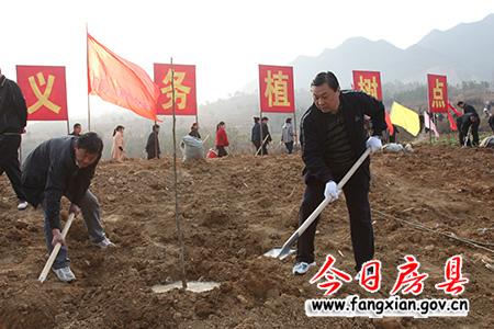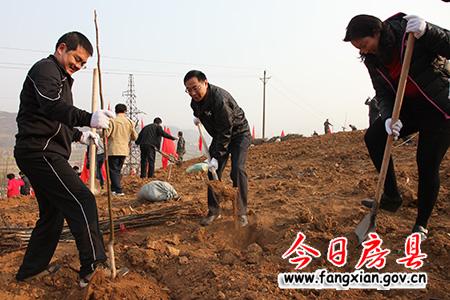 今日房县网讯 记者赵爱平 魏远扬报道:建设生态房县,打造宜居家园。9日,县领导沈明云、朱光洪、王启云、王家波、徐锦凤、陈渊、张永平、邓华明、王敬东、罗治建、林华、张延贵等深入城关镇三海村沙沟(三海水厂后坡),与县直机关单位干部职工及青年志愿者一起共同开展义务植树活动,为建设生态房县挥锹添绿。