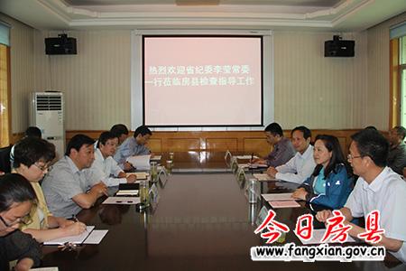 今日房县网讯 记者魏远扬报道:4日,省纪委常委李莹一行对我县纪工委运行暨纪检组织建设工作进行调研,市纪委副书记曹红志,县委书记沈明云,县委常委、纪委书记王家波陪同调研。
