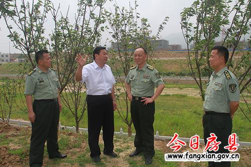 彭水清一行在县委书记沈明云、县委常委武装部部长许运福、武装部政委易永年的陪同下先后来到半岛湾大酒店、诗经文化广场、诗经景观大道、七河中学、军店镇双柏移民小区、县城至军店一级路、生态河堤、东城小学等地进行了实地察看。