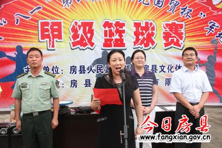 今日房县网讯 记者刘臣 实习生李保君 通讯员李丽 报道:为庆祝第86个“八一”建军节的到来,29日,我县组织驻房部队官兵和群众团体开展了第六届“阳光国贸杯”军地甲级篮球友谊赛。县委常委、宣传部部长徐锦凤,县委常委、组织部部长陈渊出席比赛开幕式。副县长林华在开幕式上致辞。